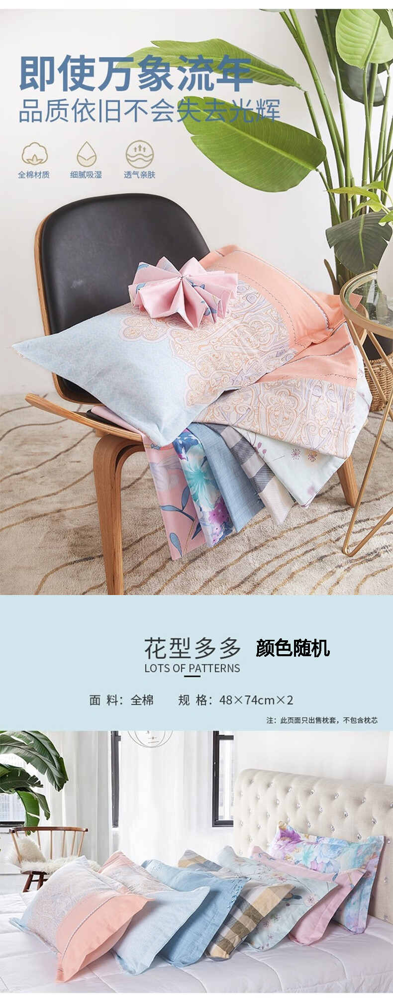 金丝莉全棉枕套 48×74cm×2颜