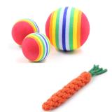 宠物彩虹球 猫咪发泡玩具棉球 狗狗磨牙七彩玩具球 直径6.3cm+宠物胡萝卜棉绳玩具手工编织洁齿磨牙结绳狗狗玩具长约24cm