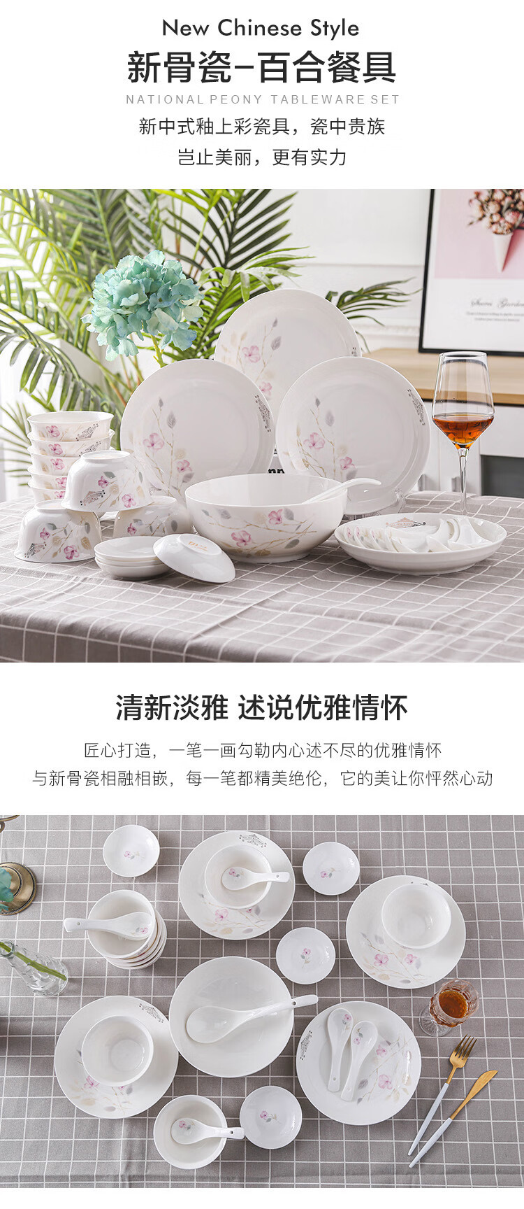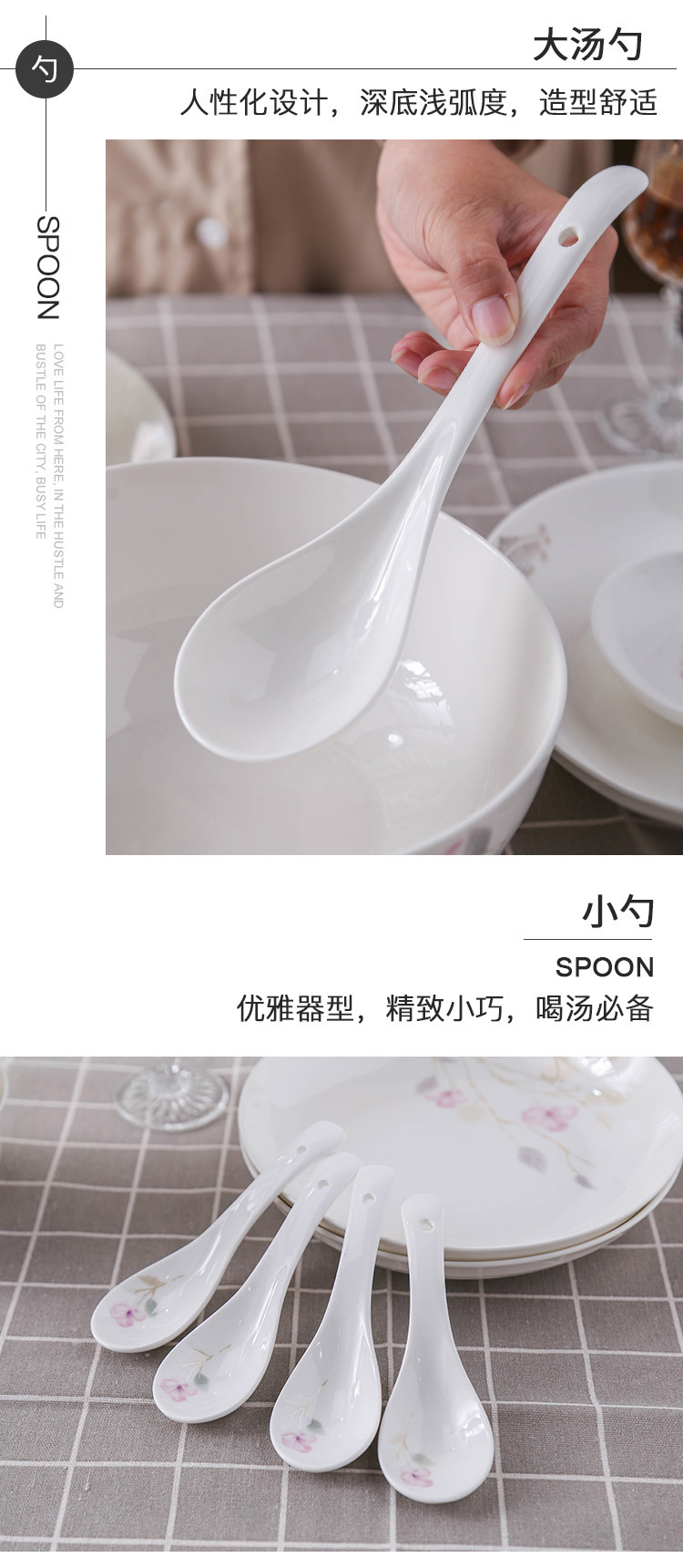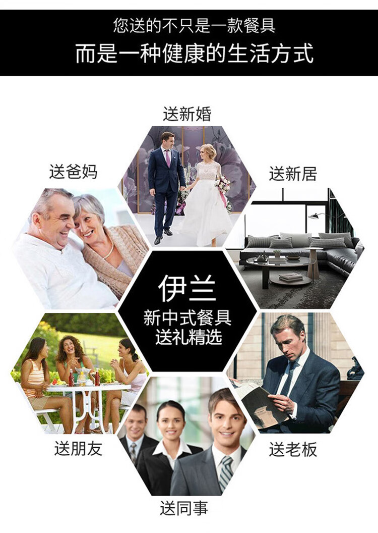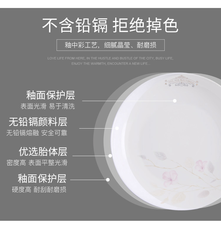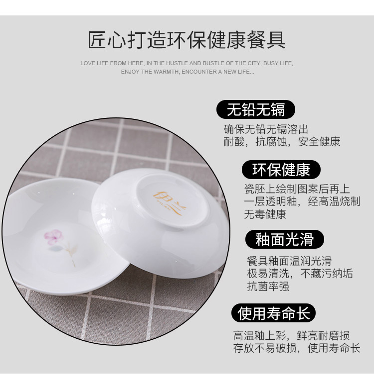 产品规格:4.5金钟碗*8个 、 小汤勺* 8个 8寸饭盘*4个、8寸汤碗 * 1个 大汤勺* 1个 、 小吃碟* 4个