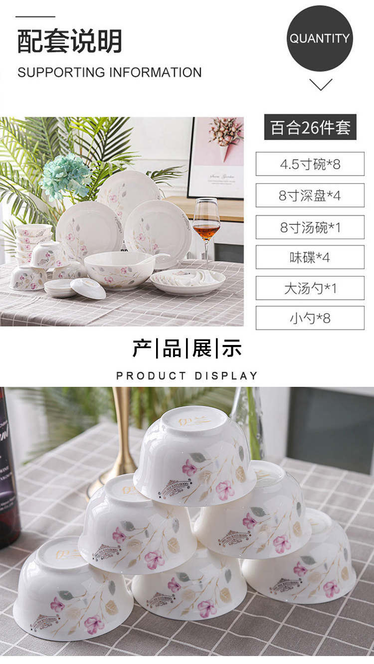 伊兰 百合二十六件套餐具(碗+小汤勺