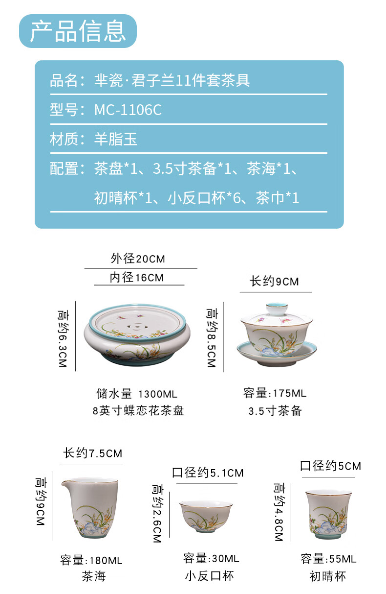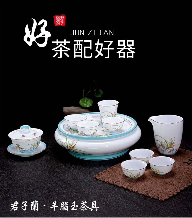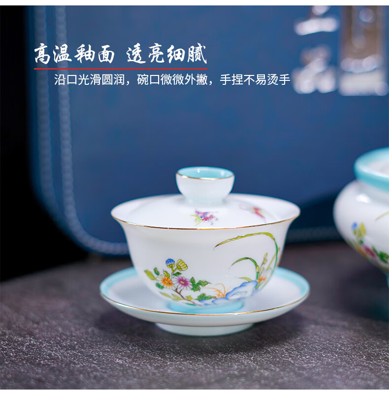 芈瓷 君子兰·羊脂玉瓷茶具(盖碗+茶