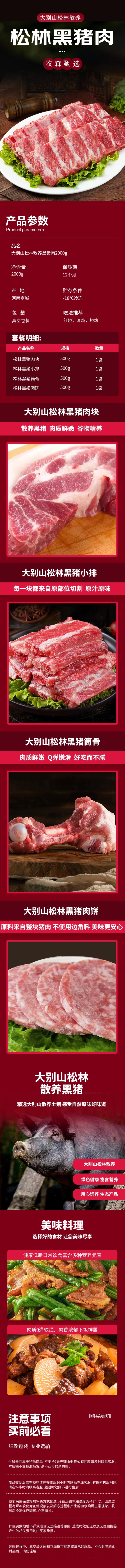 松林黑猪肉块500g/1袋 松林黑猪小排500g/1袋 松林黑猪筒骨500g/1袋 松林黑猪肉饼500g/1袋