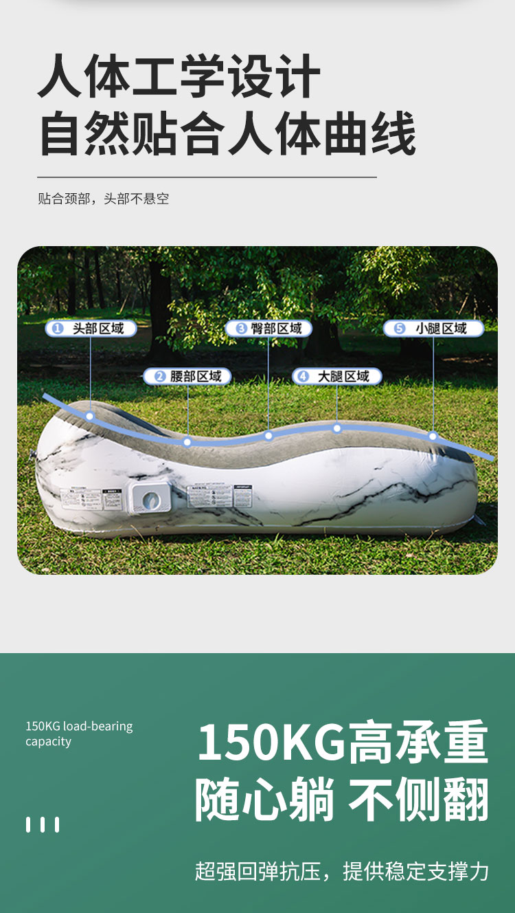三方半懒人户外家用便携露营午休气床垫