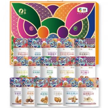手剥小山核桃(奶油味)80g 开心果80g 纸皮核桃130g 紫衣腰果80g 碧根果100g 夏威夷果(奶香)100g 手剥巴旦木(奶香)100g 开口榛子100g 小白杏150g 葡萄干188g 盐焗南瓜籽130g 兰花豆(牛肉味)150g 原味烤花生果130g 蒜香青豌豆150g 蟹香味瓜子仁150g 新疆骏枣150g