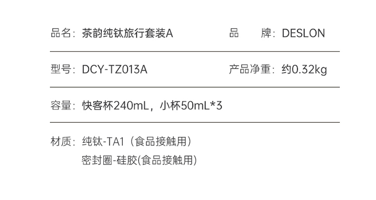 德世朗茶韵纯钛抑菌锁鲜轻盈旅行套装A
