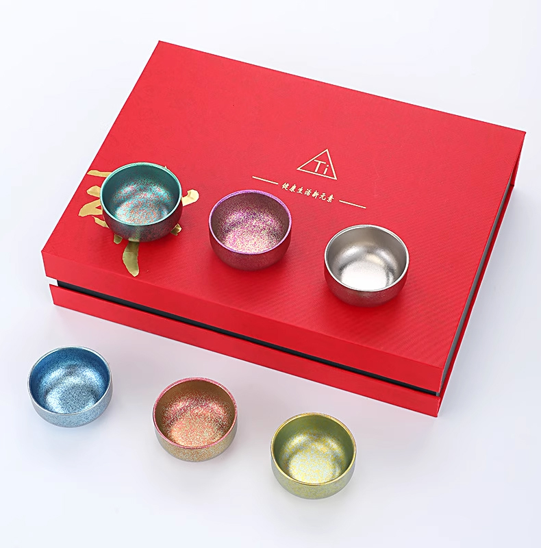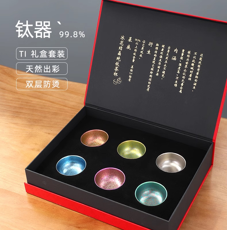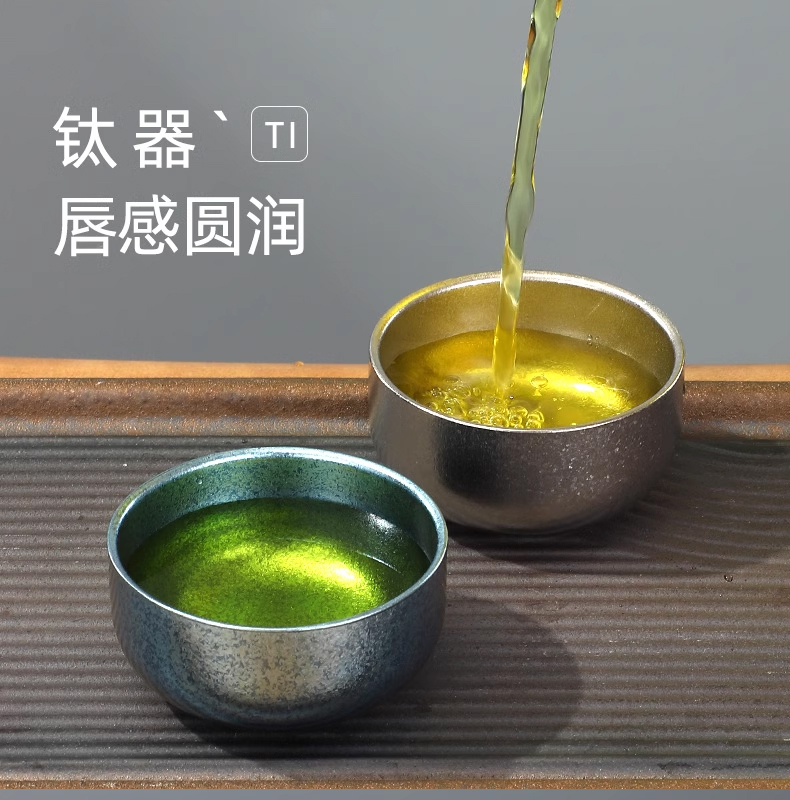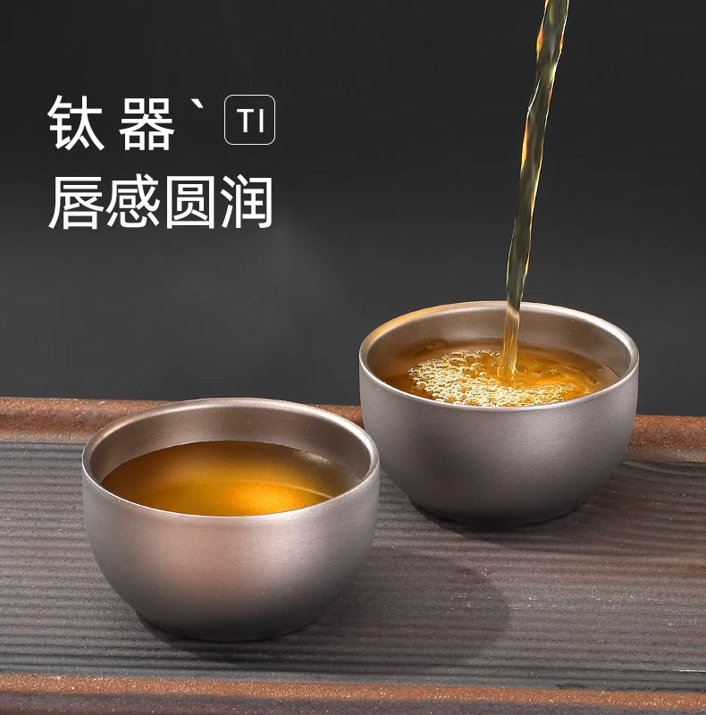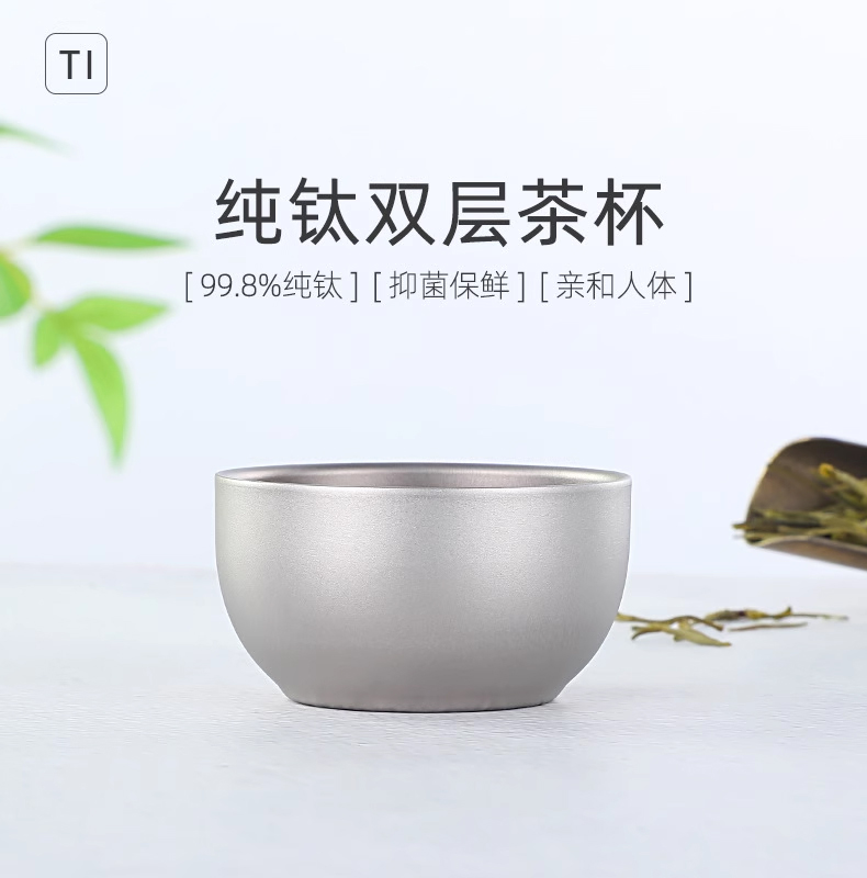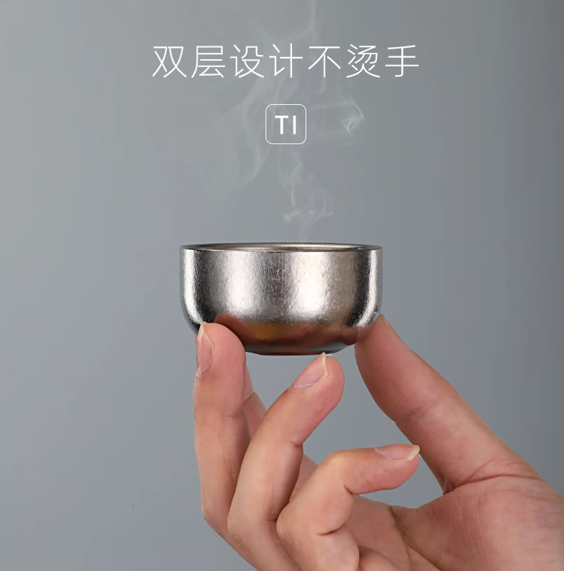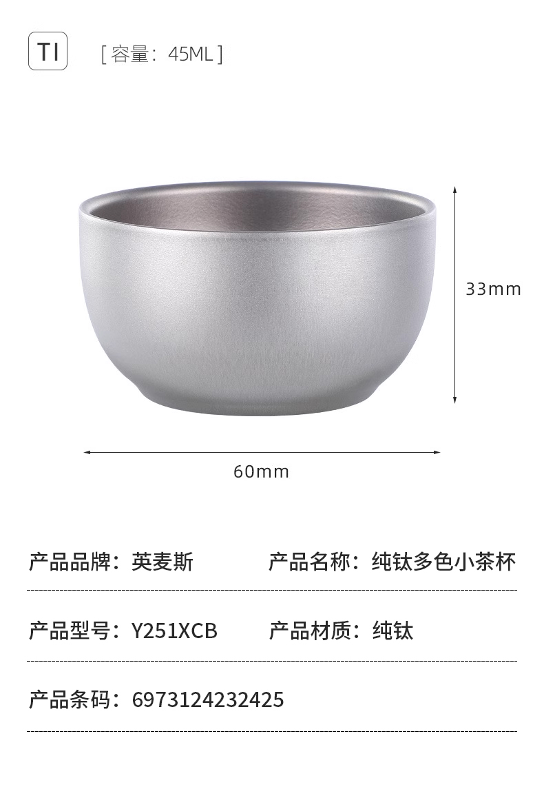 英麦斯纯钛抑菌保鲜双层防烫多色小茶杯