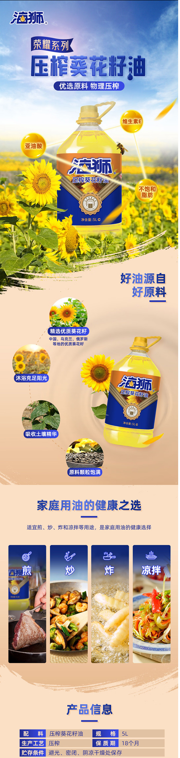 海狮压榨葵花籽油5L食用油