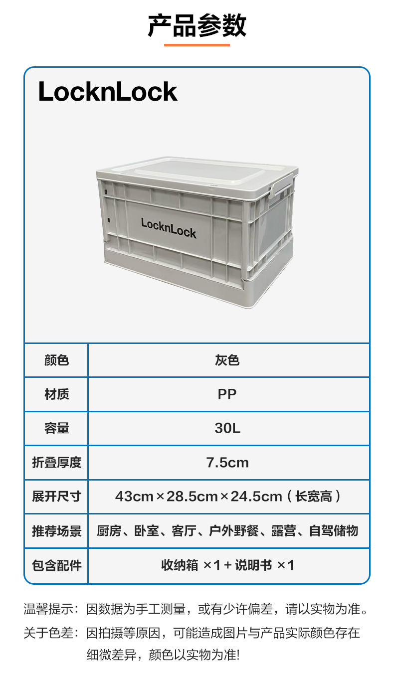 乐扣乐扣 30L大容量 坚韧耐用 底
