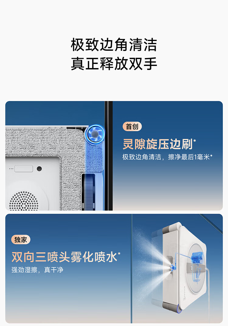 科沃斯 灵隙旋压边刷 双向三喷头雾化