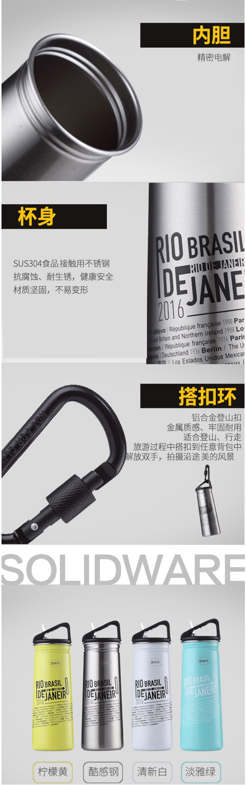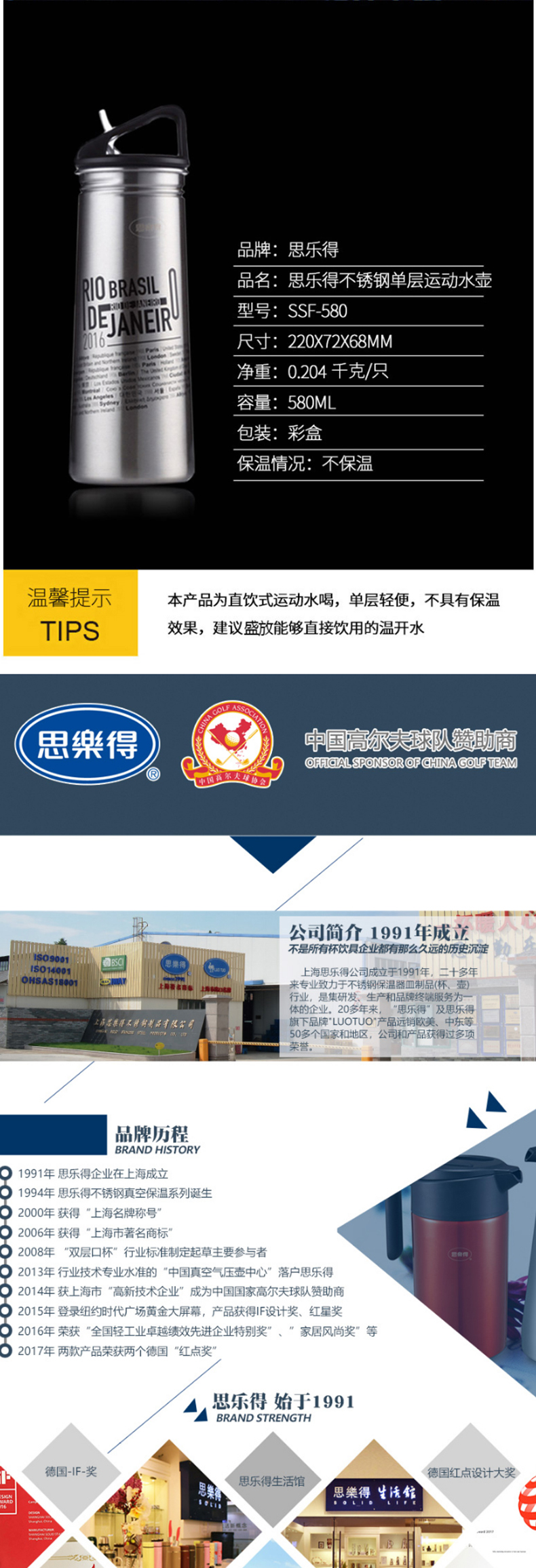 思乐得 不锈钢单层运动水瓶 58